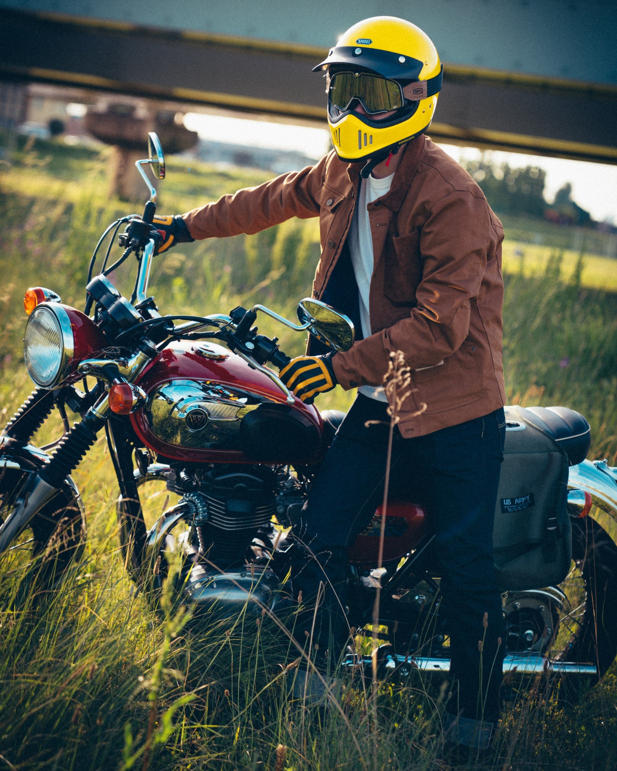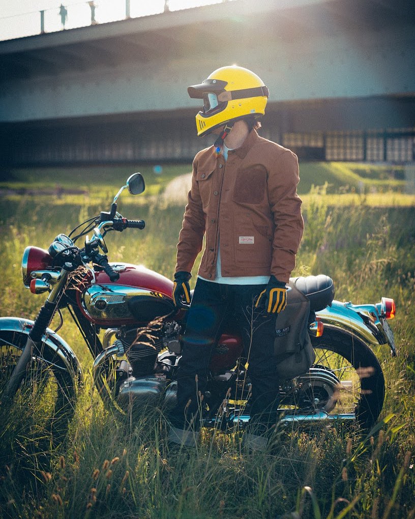 旧車やカフェレーサーとの相性も抜群で、街乗りでもツーリングでも映えるこだわりのコーデです。