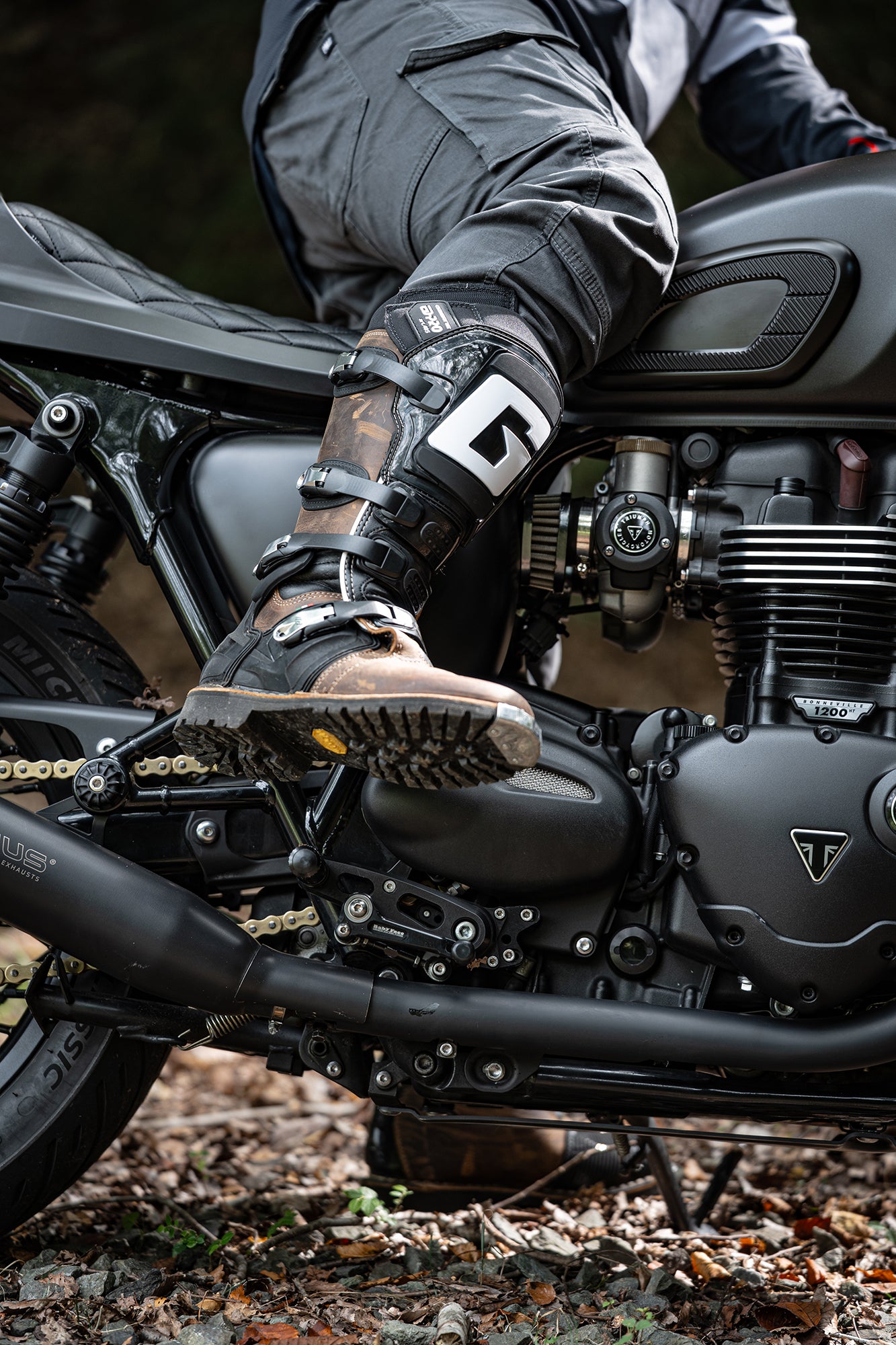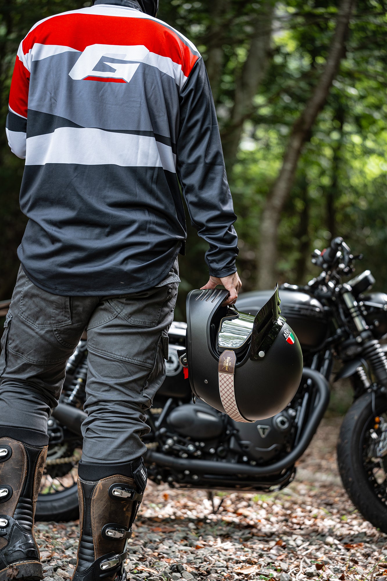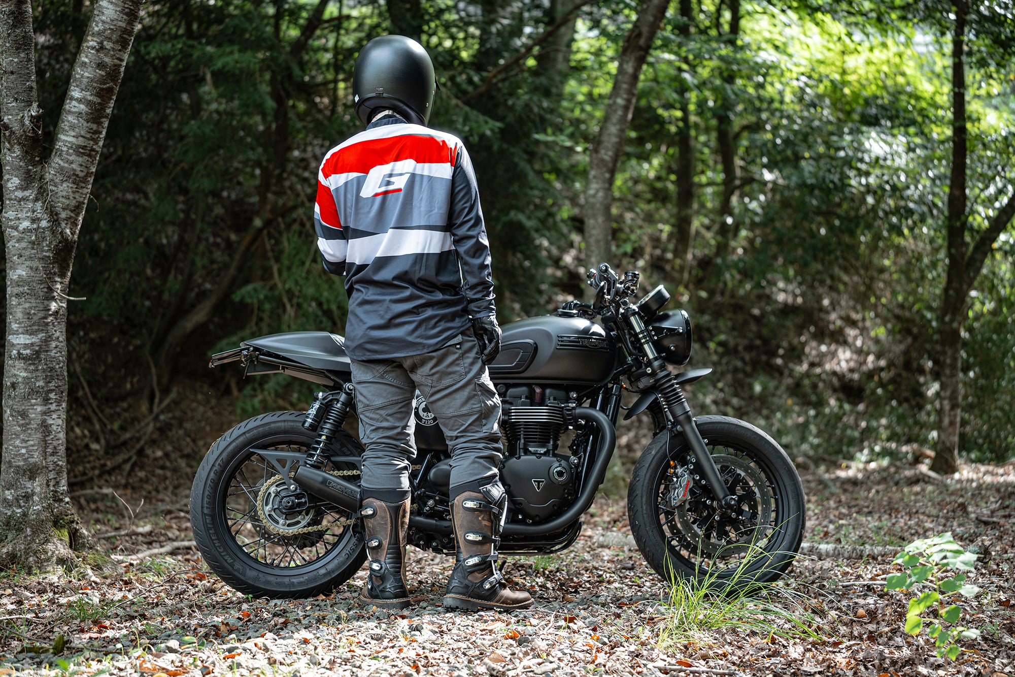 ストレッチが効き、柔らかく快適な履き心地です。カーゴパンツをガエルネ「イーディープロ アート405」ブーツにインすれば、足元まで計算されたスマートなライディングスタイルに◎