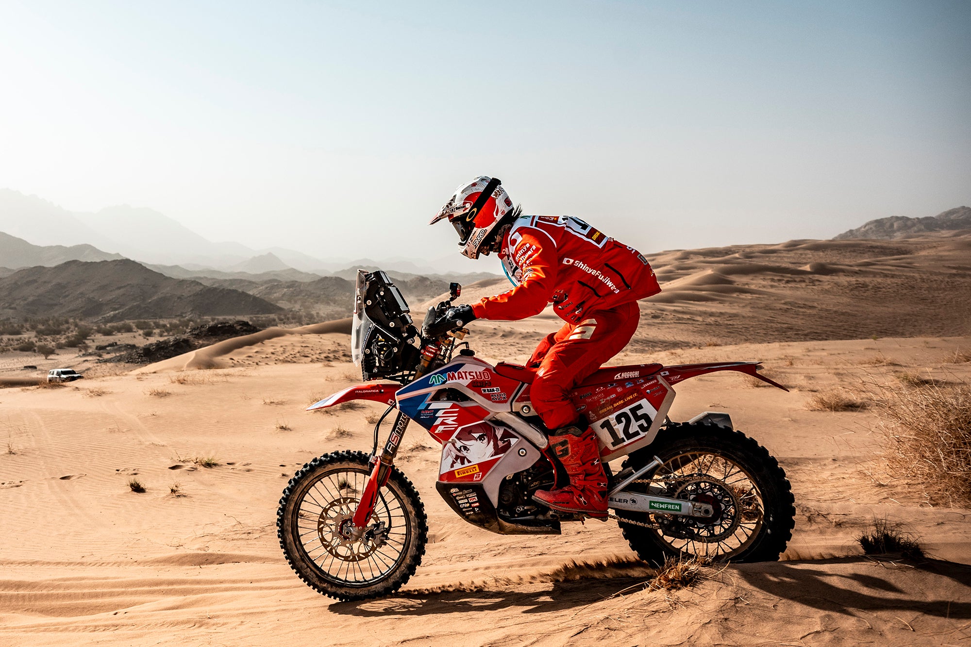 サウジアラビアで開催されたダカールラリーは、競技区間だけでも4,737kmに及び、砂丘、砂漠、渓谷、岩場など、一瞬も気の抜けない難所の連続でした。岩だらけの川跡を200km走行する日や、200km以上にわたって砂丘群を走るステージもあり、一瞬でも気が抜けない難所ばかりですがそれらは低速ではなく、高速域での走行となります。
