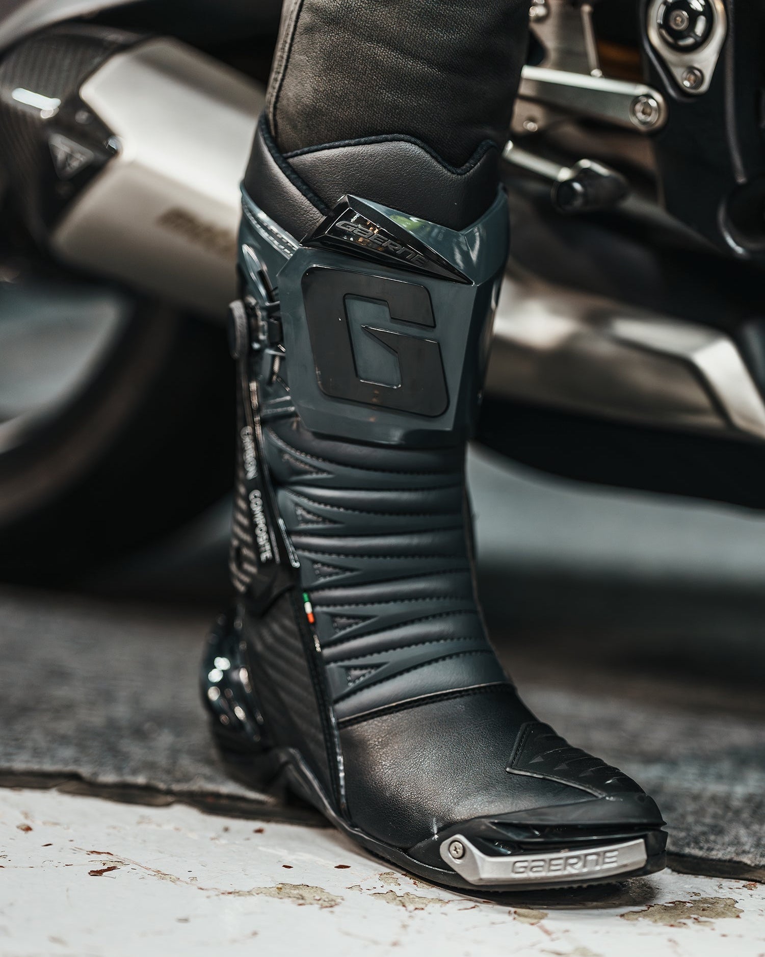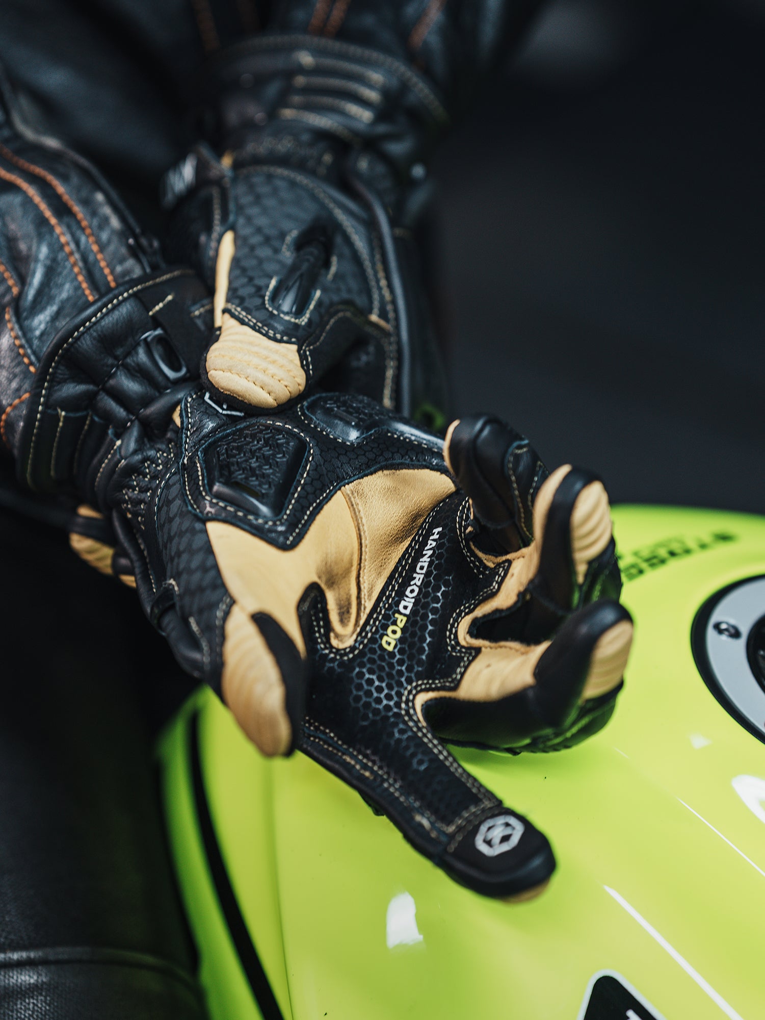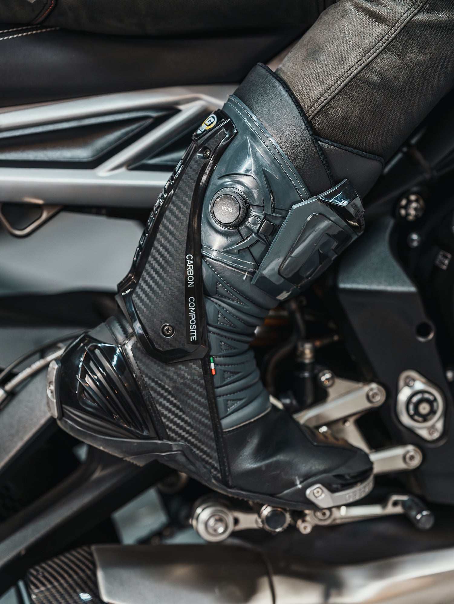 レザージャケットとレザーパンツを合わせた、本格的なスポーツライディングスタイル。グローブには独創的なプロテクションシステムを備えた KNOX ハンドロイドポッドを、足元にはレーシングDNAを受け継ぐ GAERNE GP-1を組み合わせました。レザーパンツをブーツインすることで、よりレーシーで引き締まった印象に。高い安全性とダイレクトな操作感を備えた装備が、スポーツライディングをしっかりサポートします。