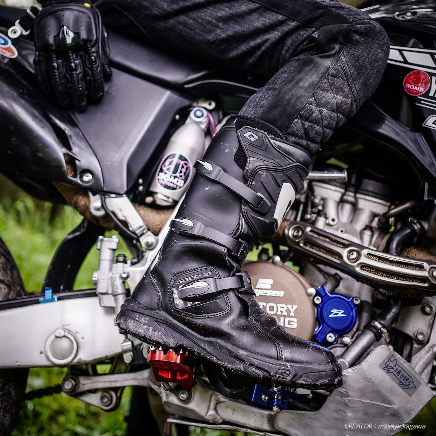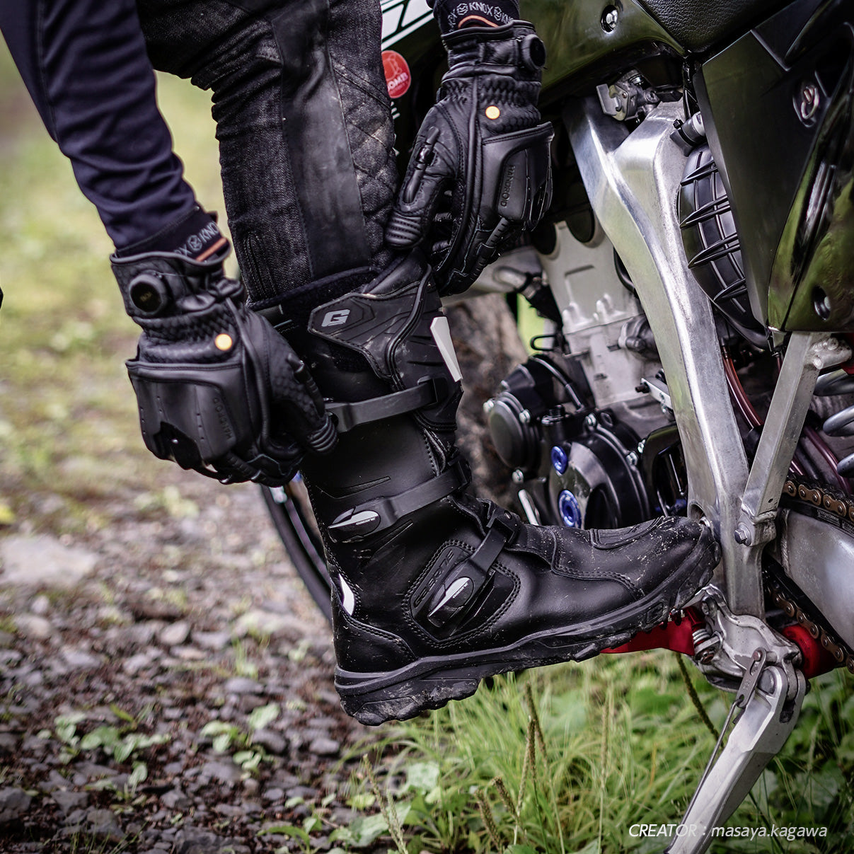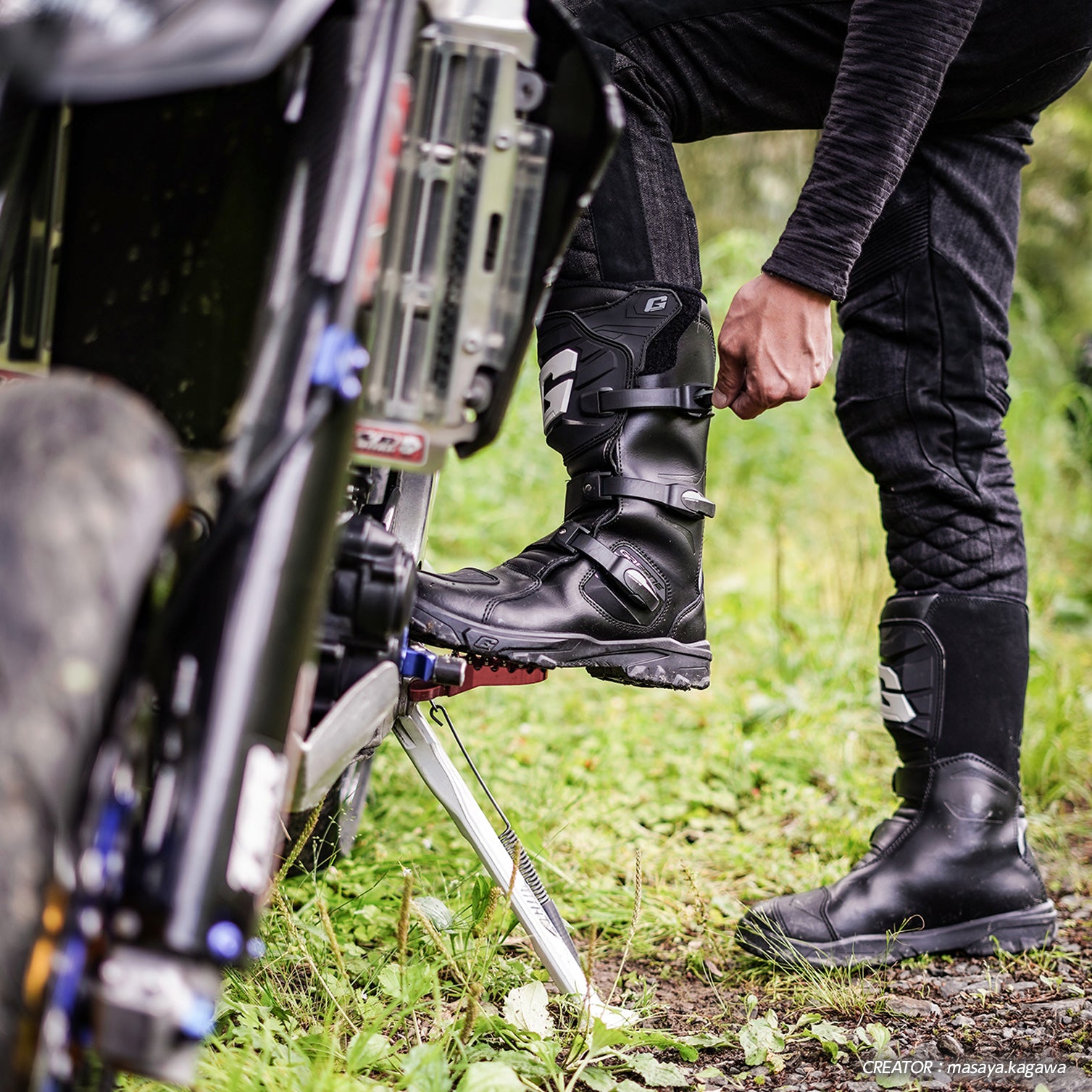 Equipped with a plastic shin plate and shift guard, they provide just the right amount of support for the ankle, allowing for easy vertical movement when shifting gears, while preventing lateral twisting that can occur in the event of a fall. The sole uses Gaerne's original block sole, providing excellent grip even in rough conditions. These boots offer the minimum level of protection, the functionality you'd expect from an off-road boot, and comfort for long-term wear.