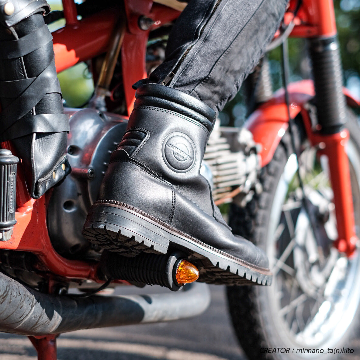 The G-Stone is a neo-classic boot with a classic boot style on the outside, but with modern performance underneath. While many so-called classic motorcycle boots are orthodox, requiring you to tie shoelaces every time and protect your feet with thick leather, the G-Stone looks similar, but can be put on and taken off with a zipper, and protection is only provided in the necessary areas, making the boot itself soft and easy to wear. Classic boots have their merits, but in terms of usability and comfort, the G-Stone is by far the superior boot.