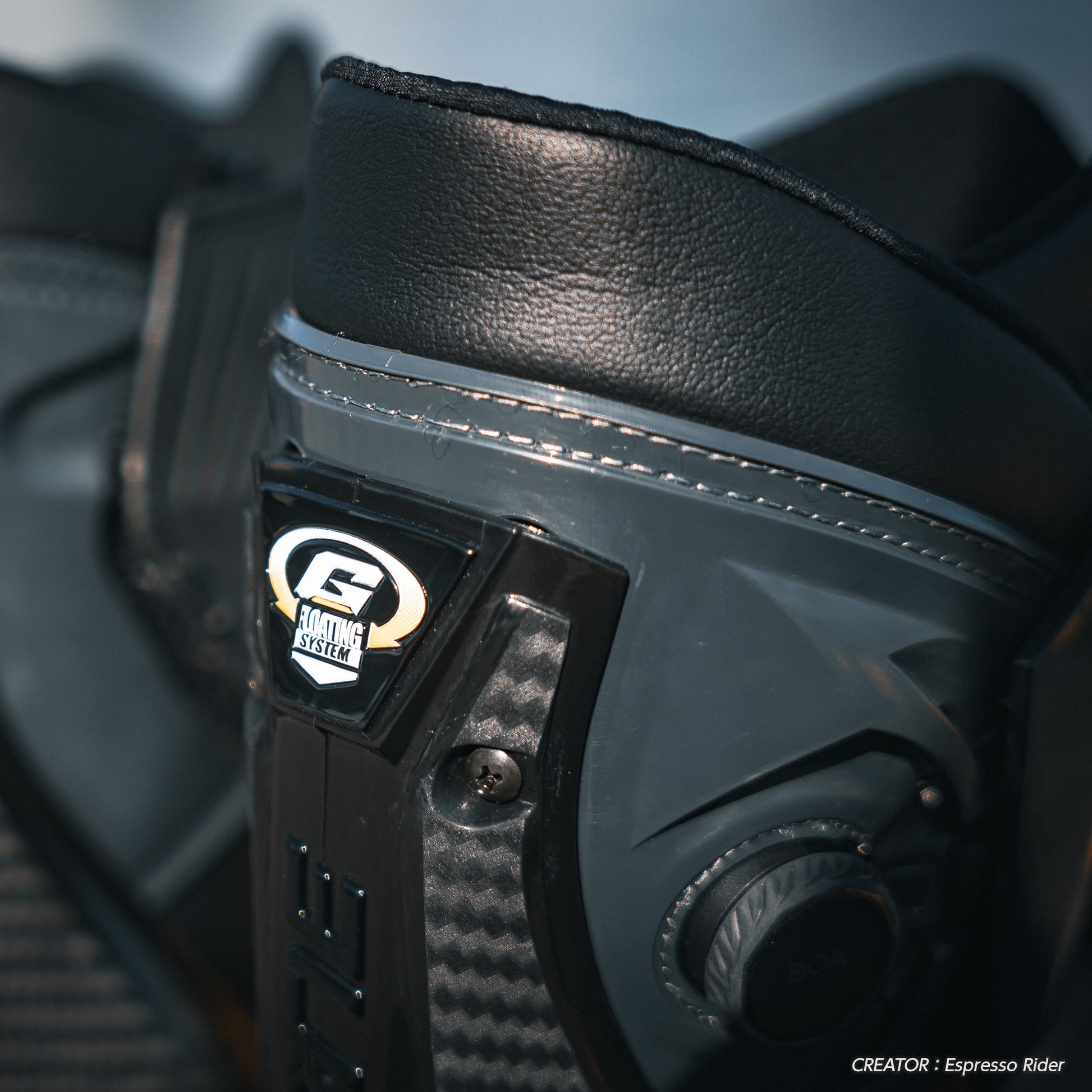 This is Gaerne's innovative system that combines safety and maneuverability. The "center wishbone frame," the core of this system, is positioned above the boot, allowing for natural movement in the direction of operation without interfering. In the unlikely event of an accident, the highly rigid carbon composite frame regulates movement, protecting the ankle from strong lateral, twisting, and rearward impacts.