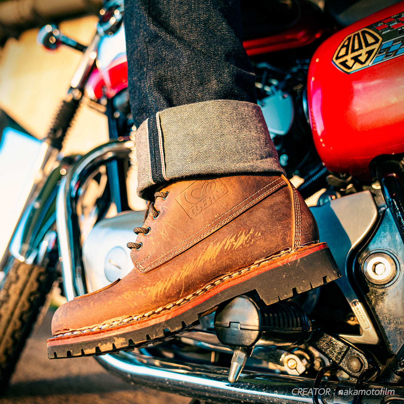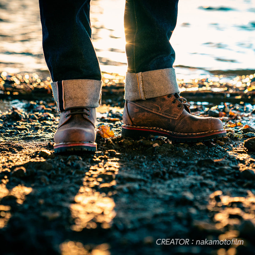 The "ROUGH" in Rough Brown means rough. This boot color was created with the concept that it looks cool when worn hard, with scratches and uneven leather coloring.