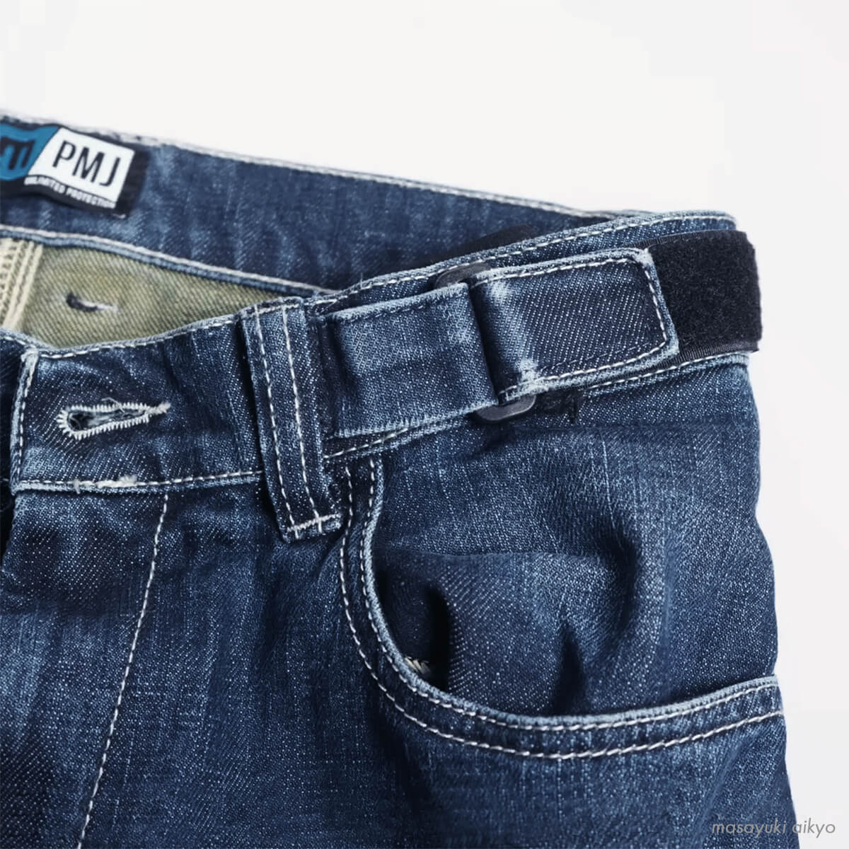 Adventure riding denim with details that maximize freedom of movement and a single layer construction that is resistant to abrasion and cuts.
