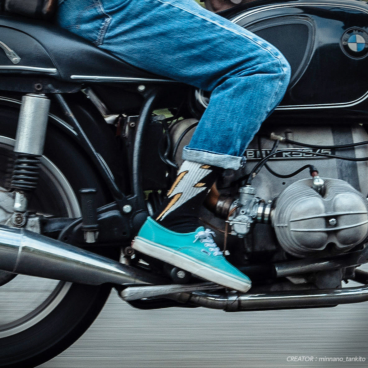 稲妻をモチーフにしたクルータイプのカジュアルソックス。