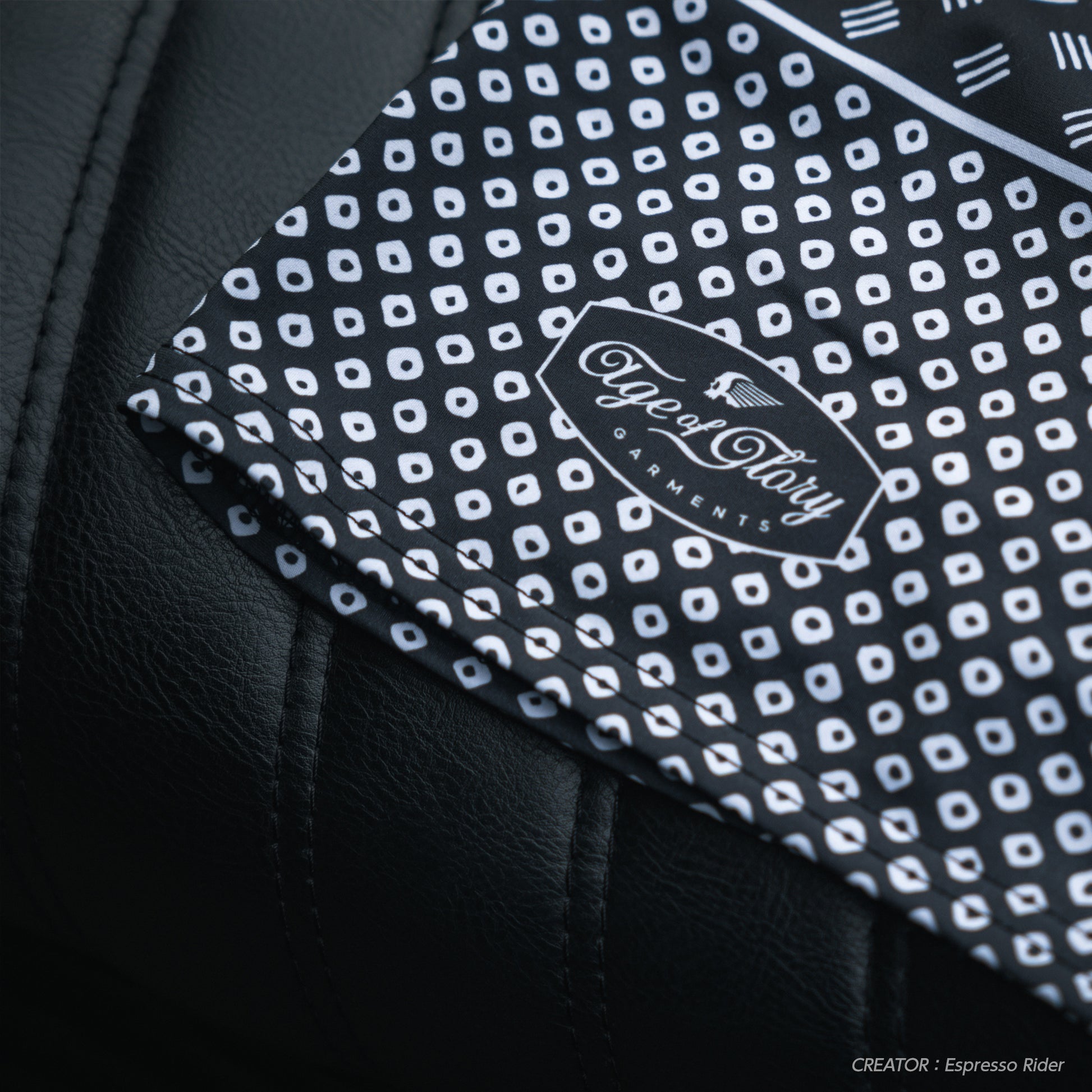 ライディング中の快適さはもちろん、デザインにもこだわりました。鹿の子柄をエイジ オブ グローリーらしくアレンジすることで、機能性だけでなくスタイル性も両立。