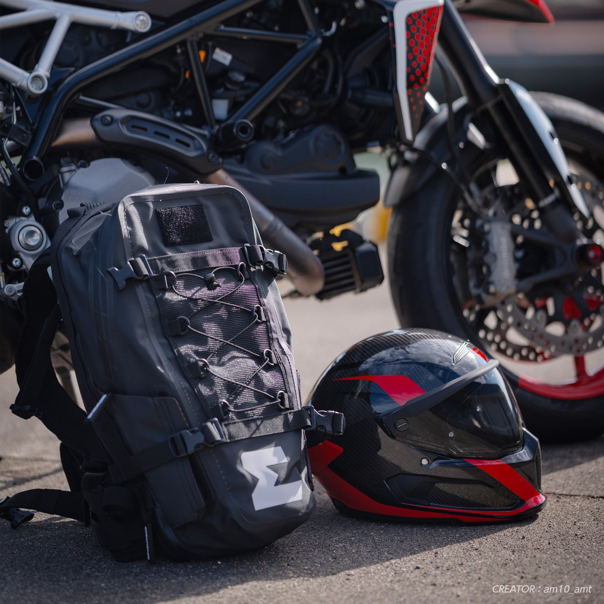 背負ったまま本格的なライディングができる完全防水防塵防砂バックパック