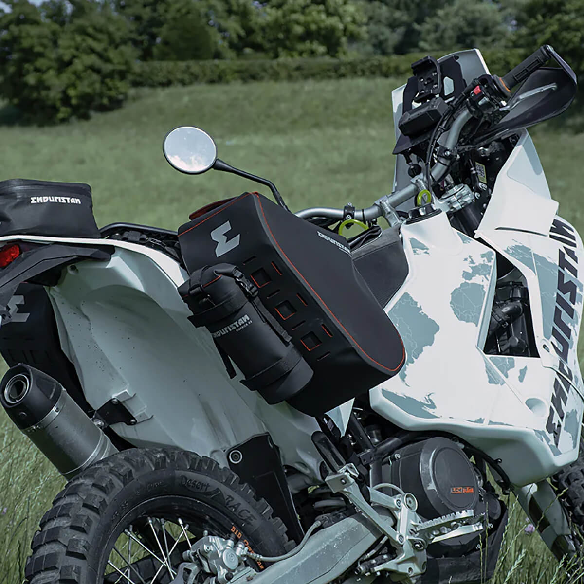 サイドキックは「アタッチメントパッド」に取り付ける設計をされていますが、ほかの取り付け方もできます。例えばクラッシュバーに、またはテールパックのようにタンデムへの取り付けなど。必要に応じて好きな場所に取り付けられる柔軟性に富んだアドオンバッグです。