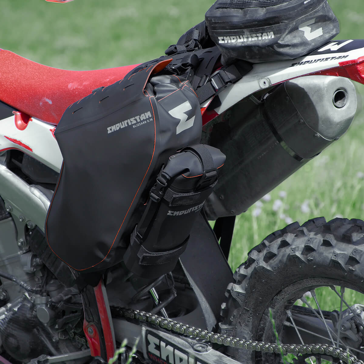「アタッチメントパッド」は、ブリザード 2 サンドバッグやサンドストーム 5 タンクバッグといった新シリーズ製品に搭載されています。サイドキックなどのアドオンバッグを、必要に応じて必要な場所に自由に装着しバッグの積載容量を自由に変えることができます。