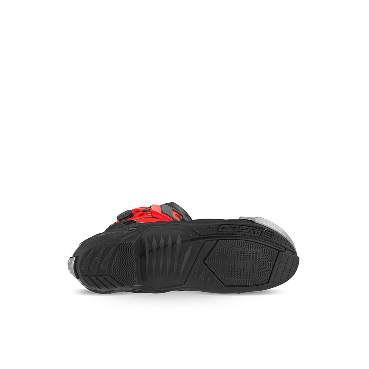 異なるコンパウンドのラバーを組み合わせ、機能的なパターンを配した新設計のガエルネオリジナルソール。マシンの挙動を正確に伝えることができ、高いグリップ力で雨の日でも安心してライディングに集中できます。ステップを踏む土踏まずの部分はブーツサイドまで立ち上がり、様々なステップワークに対応します。