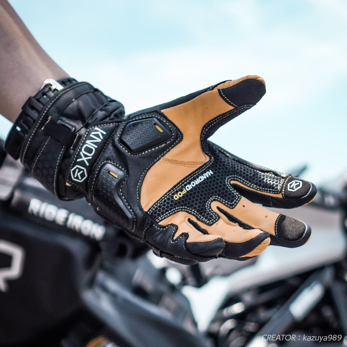 ハンドロイドは1981年からプロテクションを手掛けてきたKNOXの技術をグローブに結集させたレーシング用ハンドアーマーです。サーキットで使用するには手首まで完全に覆うロング丈が必須でしたが、ハンドロイド ポッドはその技術をそのまま公道で使うために落とし込んだショート丈のグローブです。