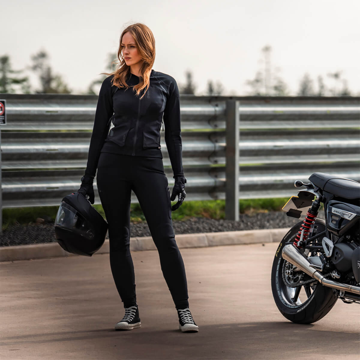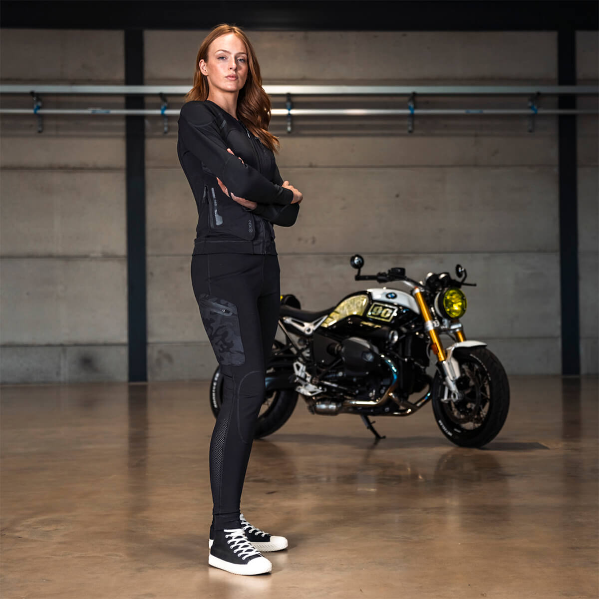 バイクライディングだけでなく、eバイクやマウンテンバイク、スケートボード、スノーボード、またはスキーなどのスポーツでも十分に活用できます。アクションプロパンツには、腰や膝だけでなく、太ももや尾骨にも薄型のマイクロロックプロテクターが装備されています。