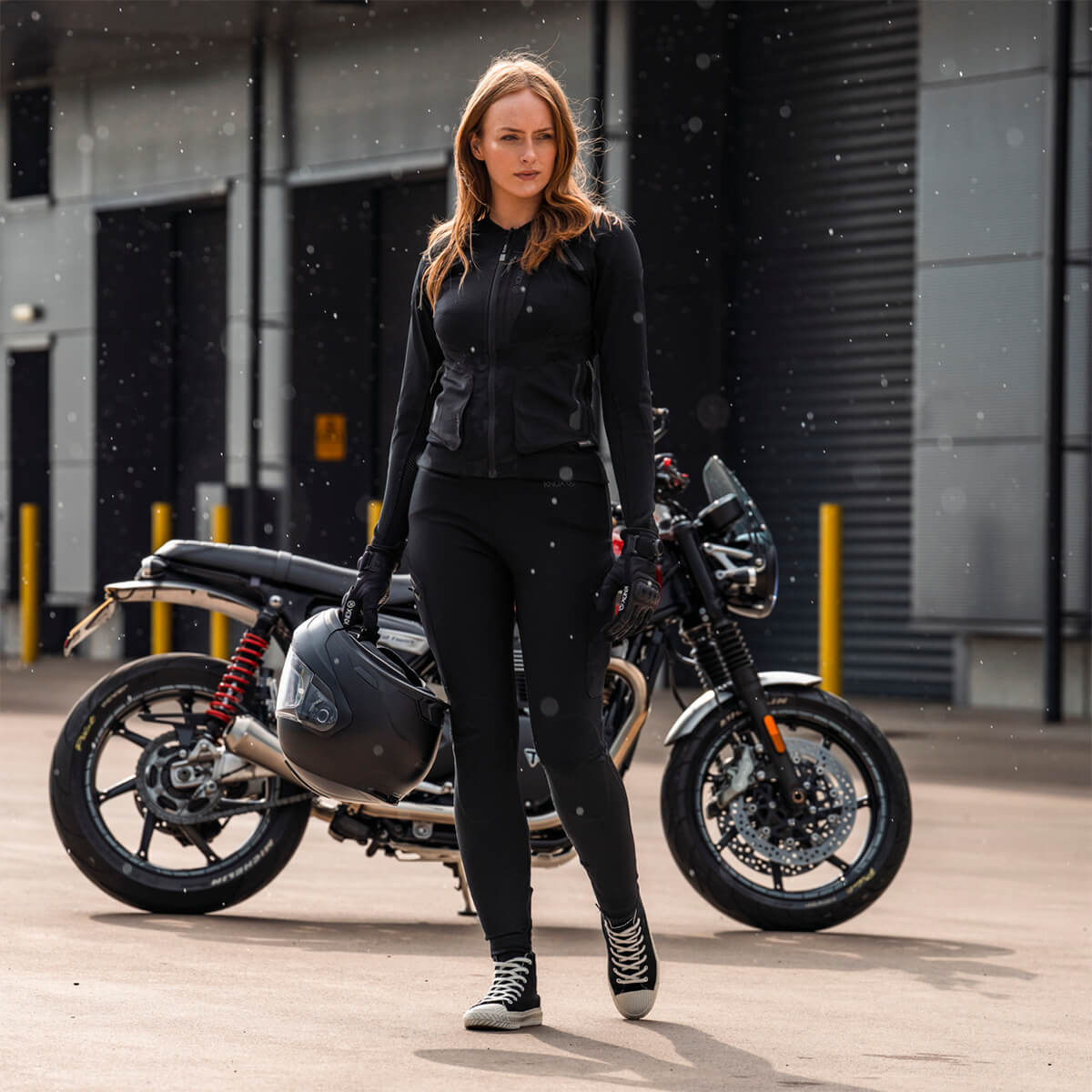 - 防護機能がしっかり備わっている本製品は、ライディングパンツとして単独で使うことも、デニムの下にプロテクションレイヤーをして使うこともできます