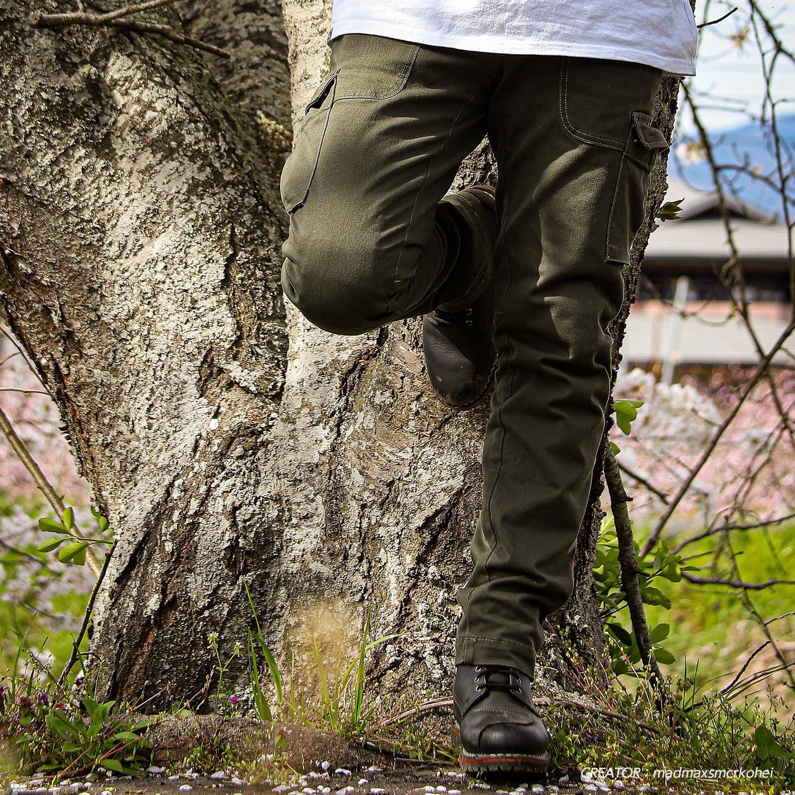 アビエイター は丈が長めなので、膝を曲げても裾が上がりすぎずちょうど良い感じでした。ウエストは少しゆとりがあります。