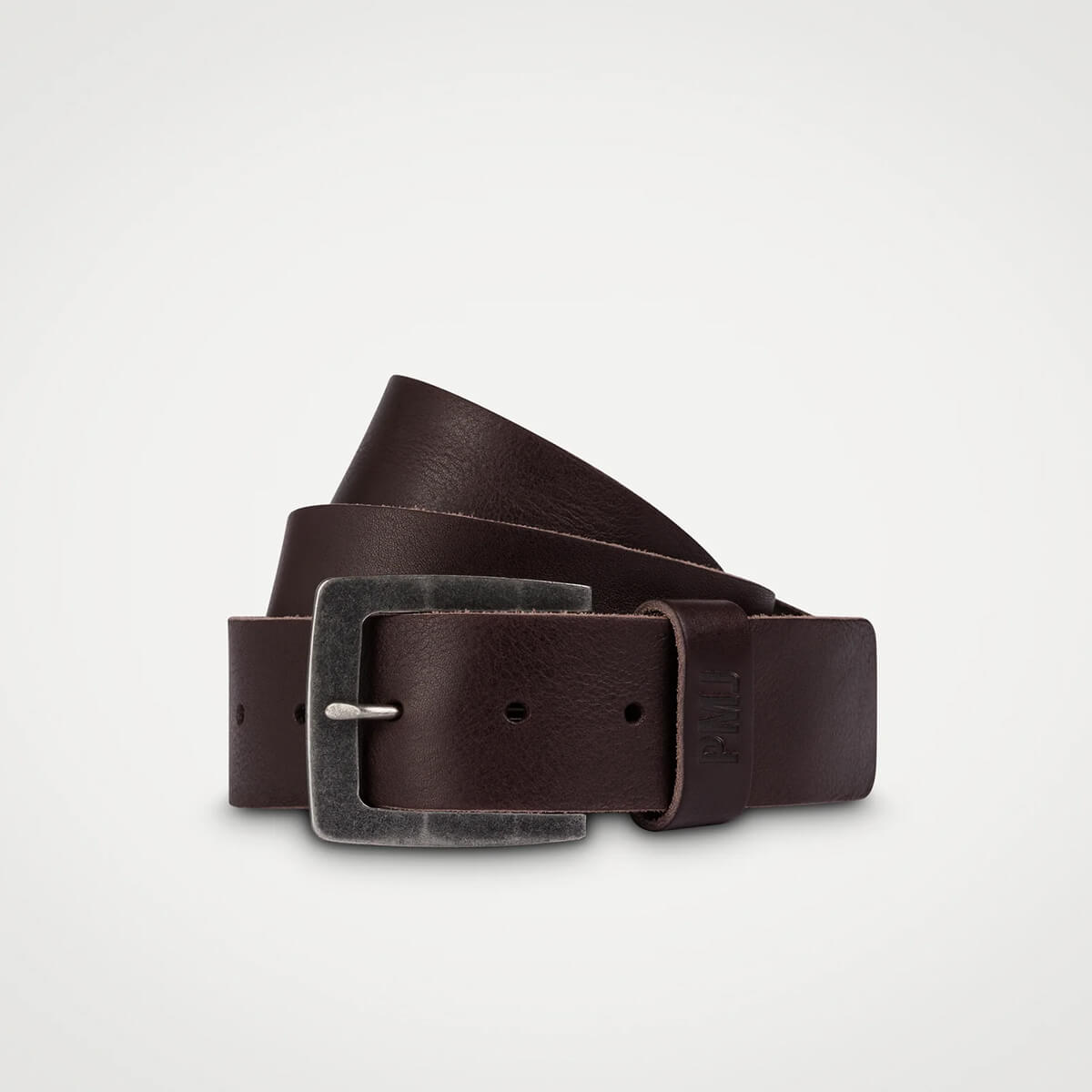 肉厚で幅広のレザーベルト。デニムのベルトループにがっしりとハマるタフでクセのない1本です。ユーズド加工が施されたバックルが落ち着いたトーンでなじみます。