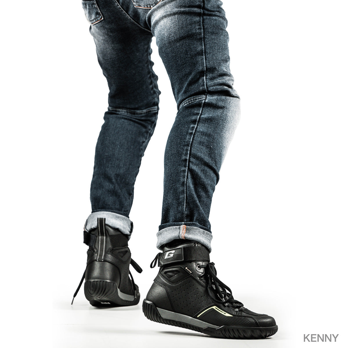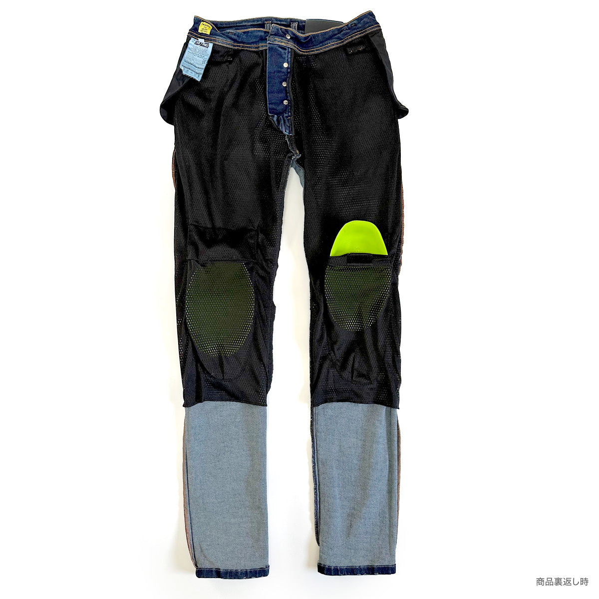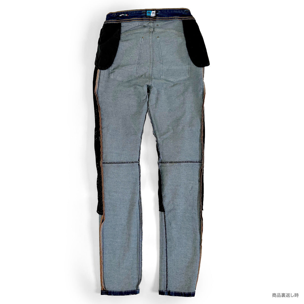 デニムの糸と防弾繊維TWARON® stretchの糸を織り交ぜたシングルレイヤー構造の生地。結束の強さ、摩耗・切り裂きへの耐久強度を持ちつつ、より軽く、通気性・ストレッチ性に長けた履き心地を実現。